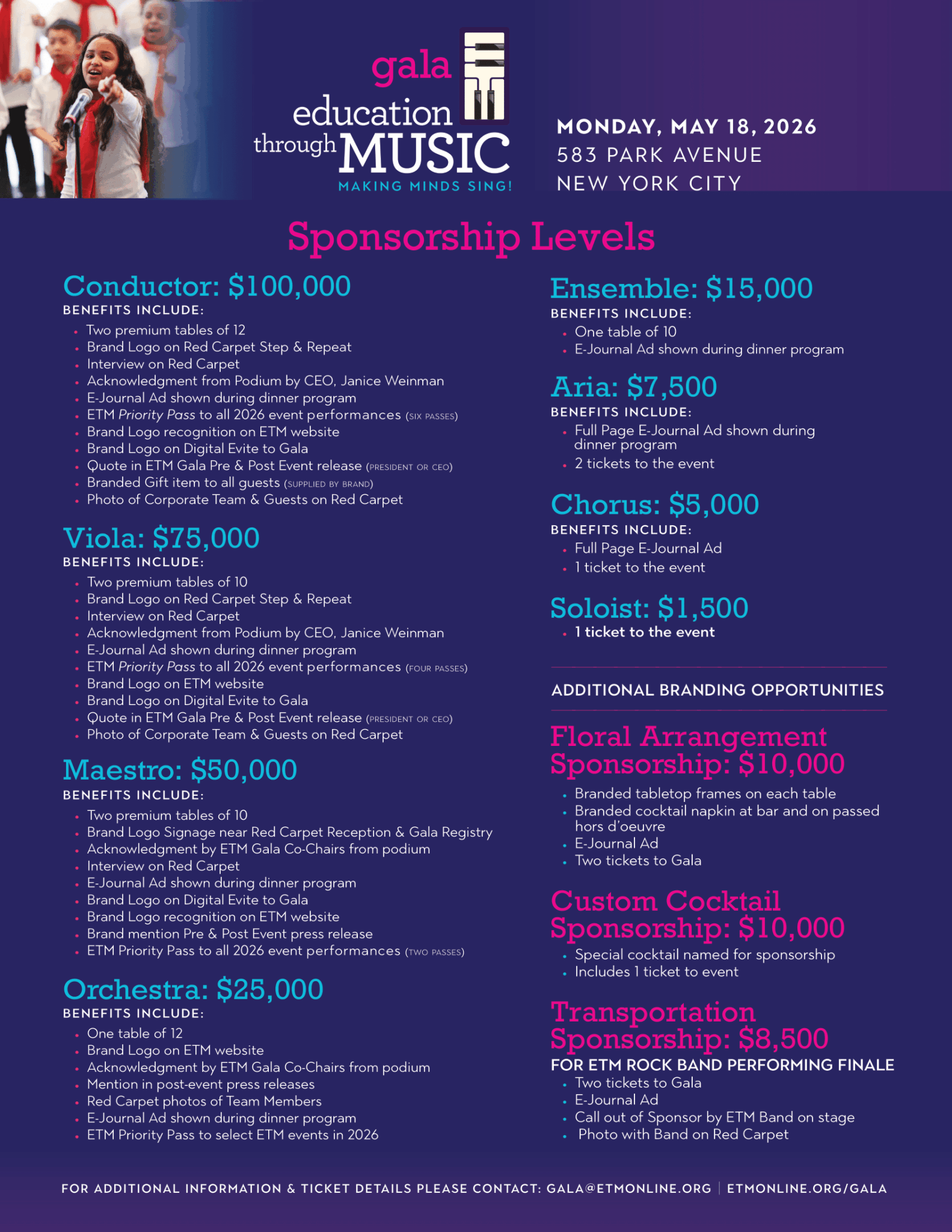 This year’s event will be an inspiring evening of entertainment, philanthropy, and student performances, highlighting the importance of music education in shaping the lives of today's underserved NYC youth.