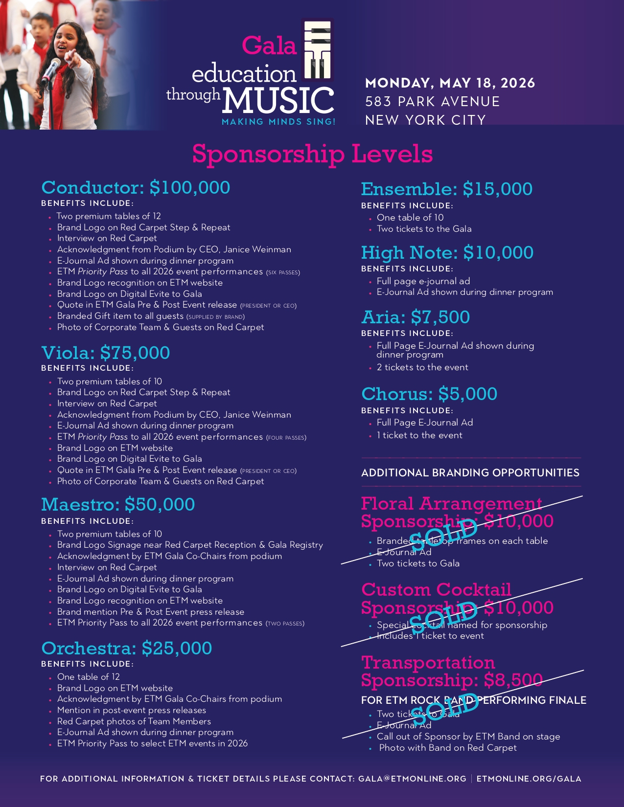 A cornerstone event for ETM, the Gala brings together industry leaders, supporters, and community members in celebration of the transformative power of music education.